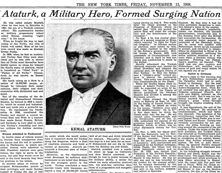 The New York Times: “Askeri kahraman Atatürk yükselen bir ulus kurdu.”