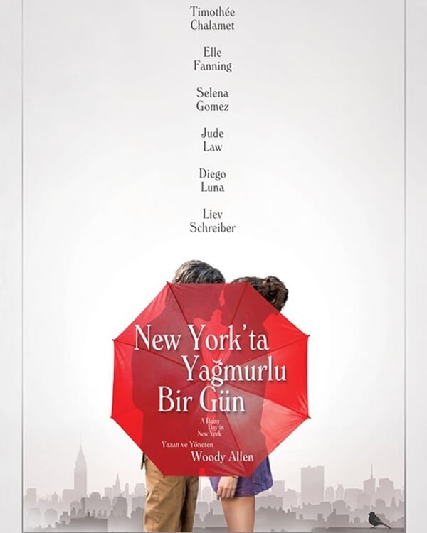 Woody Allen’in yönetmenliğini ve senaristliğini yaptığı bu romantik film Gatsby ve Ashleigh baş başa birlikte New York’ta bir hafta sonu geçirmek için şehre gelirler. Birbirlerine üniversiteden aşık olan ikili bu koca şehirde yolları ayrılır. Yaşadıkları karşılaşmaları olayları konu alan filmde Timothée Chalamet, Selena Gomez, Jude Law, Elle Fanning gibi isimler oynuyor. Filmi Amazonprime ve Beinconnect’ten izleyebilirsiniz.