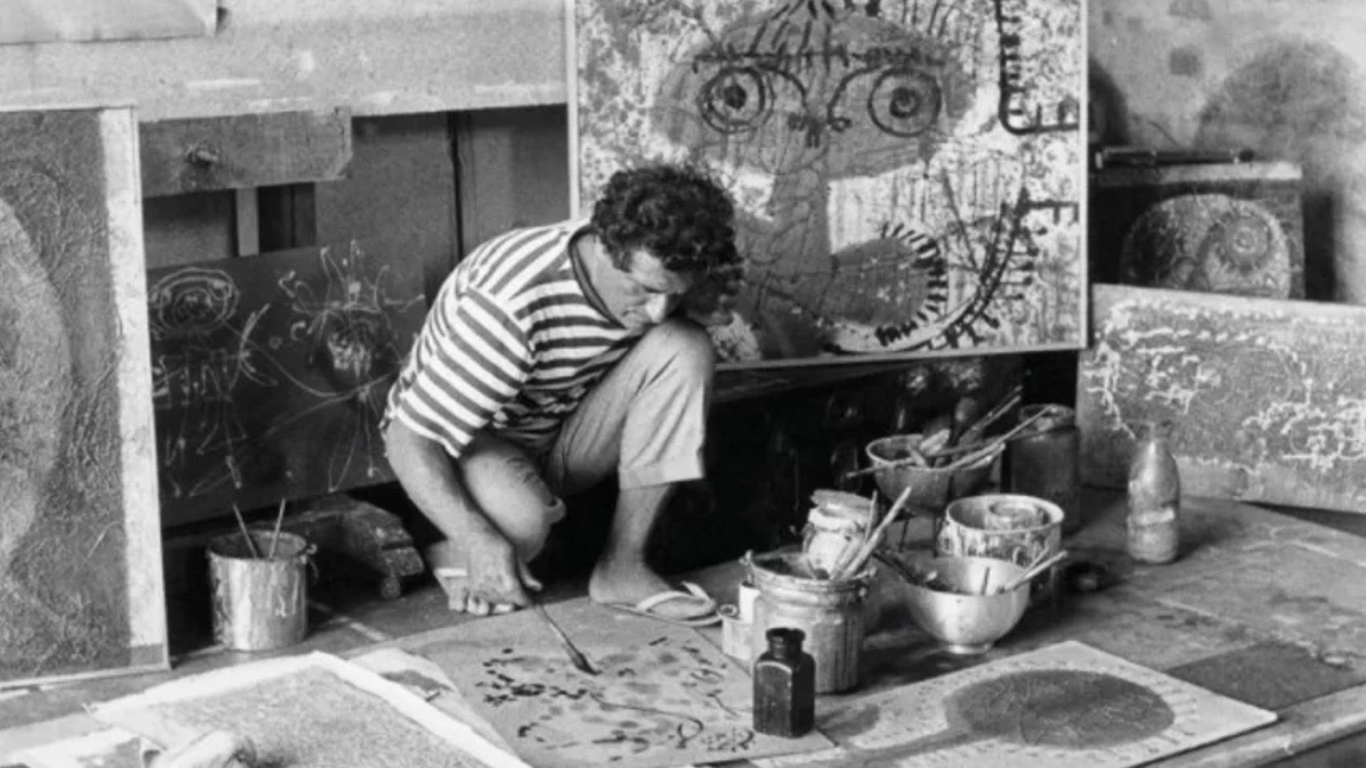 Bedri Rahmi Eyüboğlu, 1950 yılında Ankara Dil Tarih ve Coğrafya Fakültesi’nde 150 resimden oluşan büyük bir “Retrospektif” sergisi düzenleyerek sanat dünyasında önemli bir adım attı. Bu dönemde birkaç aylığına Paris’e gitme fırsatı buldu ve burada özellikle İnsan Müzesi’nden derinlemesine etkilendi. Bu etkiyle birlikte “Güzel yararlı olmalıdır” anlayışını benimseyerek geleneksel yazmacılık sanatına modern bir yorum getirdi. 1950 yılı aynı zamanda Bedri Rahmi’nin İstanbul’daki Kariye Camii‘nde bir düzenleme yaparak Bizans mozaikleriyle ilgilenmeye başladığı bir dönemi de işaret eder. 1951’de Küçük Sahne’nin dekorasyonunu üstlendi ve aynı yıl boya ile mozaik dokusunda eserler üretmeye devam etti.