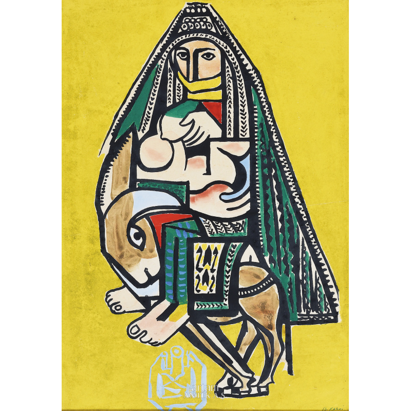 1951 tarihli, eşek üzerinde Anne ve Çocuk eseri, yaşamın temel değerlerini anlatmaya yönelik bir bakış açısını yansıtır. Anne ile çocuk arasındaki güçlü bağ, eserdeki figürler aracılığıyla izleyiciye aktarılır. Sanatçı, renkleri ve biçimleri kullanarak anne ile çocuğun arasındaki samimi ilişkiyi, sevgi ve güven duygularını hissettirmeye çalışır. Eser, aynı zamanda Bedri Rahmi’nin halk sanatına olan ilgisini de gösterir; bu ilgisi, özellikle geleneksel desenler, renkler ve biçimlerle birleşerek modern bir anlatım oluşturur.