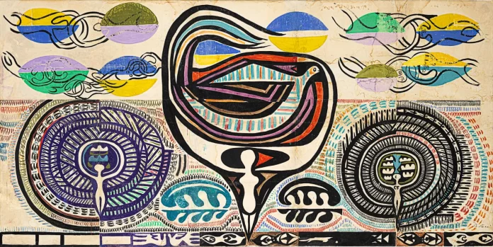 Bedri Rahmi Eyüboğlu, 1958’de Brüksel’deki Uluslararası Sergi’de Türk pavyonuna yaptığı 227 metrekarelik büyük çalışmayla altın madalya kazandı ve 1959’da Paris’te NATO Merkezi için 50 metrekarelik bir pano tasarlayarak Türk sanatını dünya çapında tanıttı. Sanatçının hayatı, hem görsel sanatlar hem de yazın alanındaki katkılarıyla kalıcı bir üne kavuştu. 1960-1970 arasında yazarlığa ara vererek sanatıyla içsel bir dönüşüm yaşadı. 1961’de Amerika’ya giderek soyut biçimlere ve yeni malzemelere yöneldi; plastik tutkal, kum ve Japon kağıdı gibi alışılmadık malzemelerle farklı bir sanat dili oluşturdu. Bu dönem, onun sanatına yeni bir boyut kazandıran önemli bir süreç oldu.