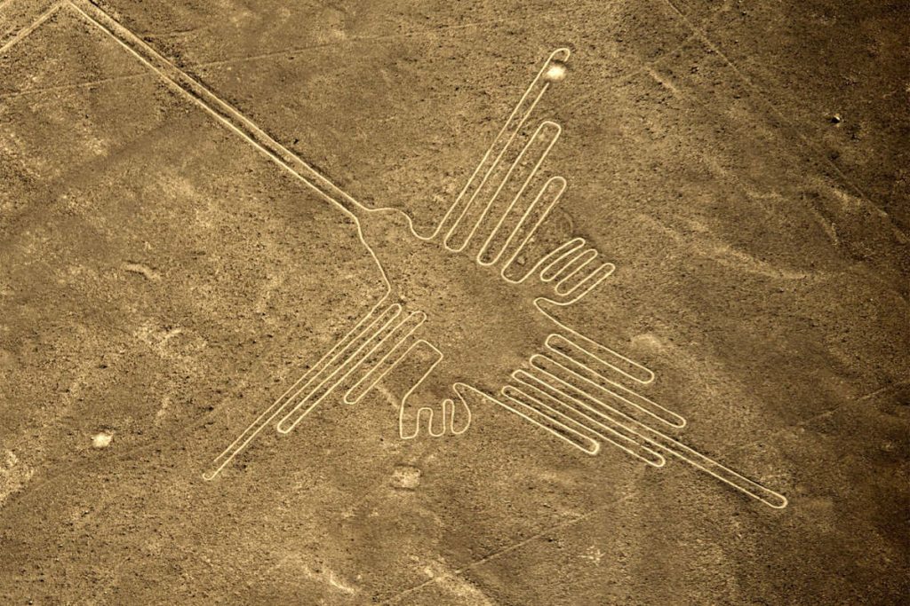 Peru‘nun kuzeyinde Nazca Çölü‘nde bulunan nazca çizgileri; 1920’de Peru çölü üzerinden uçak seferleri başlatıldığında keşfedilmiş, 1941’e kadar bu sıra dışı çizgiler üzerinde araştırma yapılmamıştır. En eski çizgiler 2000-2500 yıl öncesine dayanmaktadır. Günümüze kadar nasıl dayandığı sorusu akla gelen ilk soru. Dayanıklılığının en önemli nedeni ise çöl iklimidir. Çizgilerin bulunduğu çöl, dünyanın en kurak çöllerinden birisi olduğu için yılda neredeyse hiç yağmur görmemektedir. Zeminin düz ve taşlı olması sayesinde de erozyon oluşmaz. Ayrıca çizgiler, toprağın alt katmanlarına işlendiği için olası rüzgarlarla silinmez. Bundan dolayı yüzyıllar boyunca hiç bir hasar almadan günümüze kadar gelmiştir.