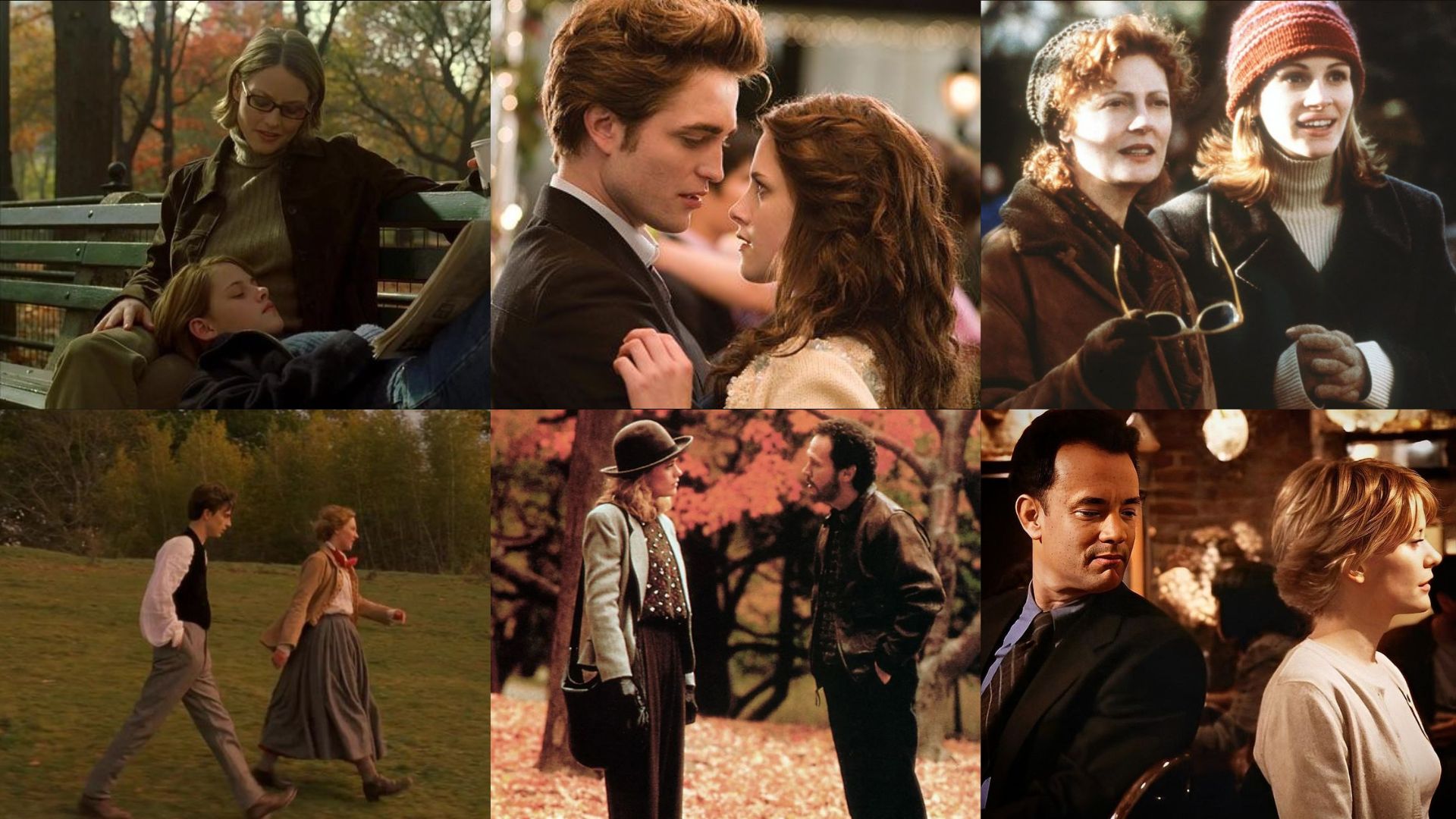 When Harry Meet Sally (1989), Panic Room (2002), Step Mom (1998), Little Women (2019), Sleepless in Seattle (1993), You’ve Got Mail (1998), Sweet November (2001), Autumn in New York (2000), Mona Lisa Smile (2003), Knives Out (2019), Dead Poets Society (1989), The Lake House (2006), Kiki’s Delivery Service (1989), Atonement (2007).