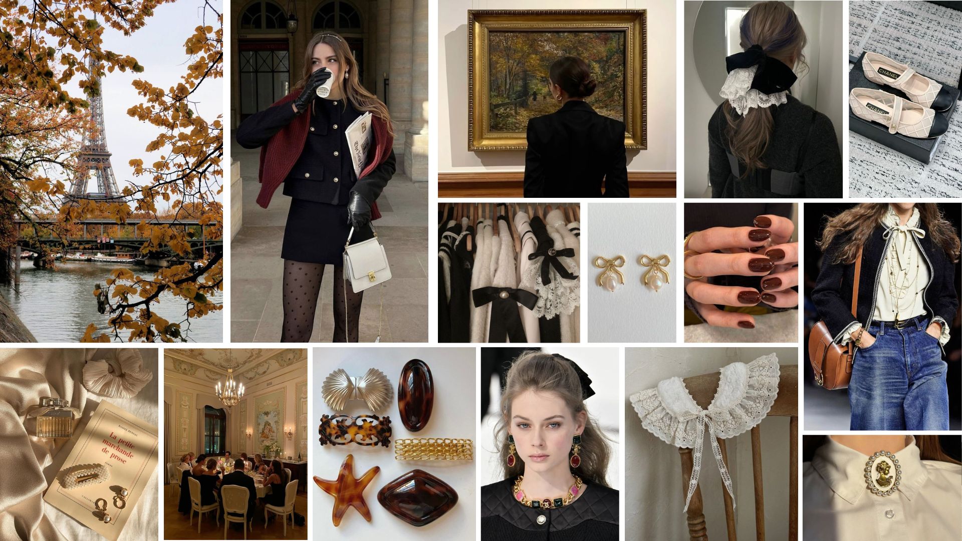 French Bourgeois’yı; tweed kumaş ceketler, dantelli, fırfırlı ve fiyonk yaka-kol detaylarına sahip ipek gömleklerle, ince kaşmir kazakların burjuva notalarını, midi etekler ve kaliteli jeanlerle kombinleyerek modern ve konforlu bir yorumla taşıyabilirsiniz. Süet loafer’lar, kitten heels ve ballet flats ayakkabıları zarif kapitone çantanızla eşleştirmek stilinizi tamamlar. Saç aksesuarları French Bourgeois estetiğinin vazgeçilmezidir: French barrettes, tortoiseshell tokalar, saten saç bantlar, kadife fiyonklar ve saten scrunchie’ler klasik Fransız şıklığını yansıtır. Minimal inci takılar, cameo broşlar ve çıkarılıp takılabilen yakalıklar (detachable collars) ise elbise ve gömleklerinize sofistike bir dokunuş katar. Ayrıca Seiko, Kate Spade ve Cartier gibi markaların kaliteli saatleri ve ince, metal çerçeveli, feminen gözlükleri stilinizi karakterleştiren önemli detaylardır. Son dokunuş olarak pastel tonların hâkim olduğu French girl makyajıyla hassas, taze ve vintage bir etki yaratabilirsiniz.