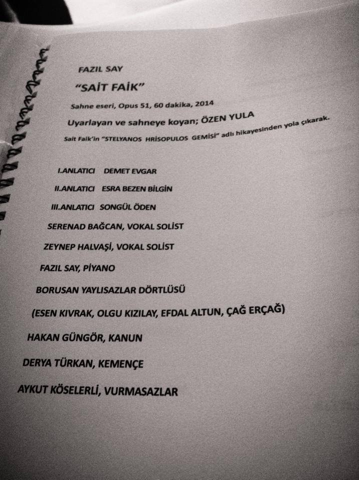 Fazıl Say, hikayeciyi anmak için hazırladığı bestesinde Sait Faik’in ilk kitabı olan Semaver‘in “Stelyanos Hrisopulos Gemisi” adlı hikayesini sahneye taşıdı.