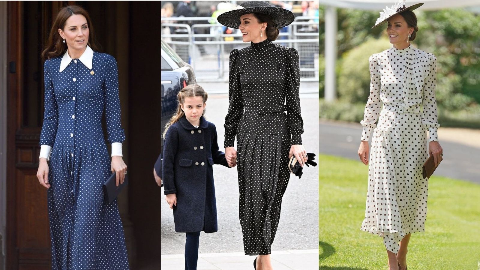 Birçok kraliyet kadını gibi Kate Middleton’ı da puantiye desenli elbiseleriyle görmek mümkün. Özellikle mavi-beyaz ve siyah-beyaz tonlarda seçtiği modeller, kraliyet modası ile İngiliz nostaljisini şıklıkla birleştiriyor.