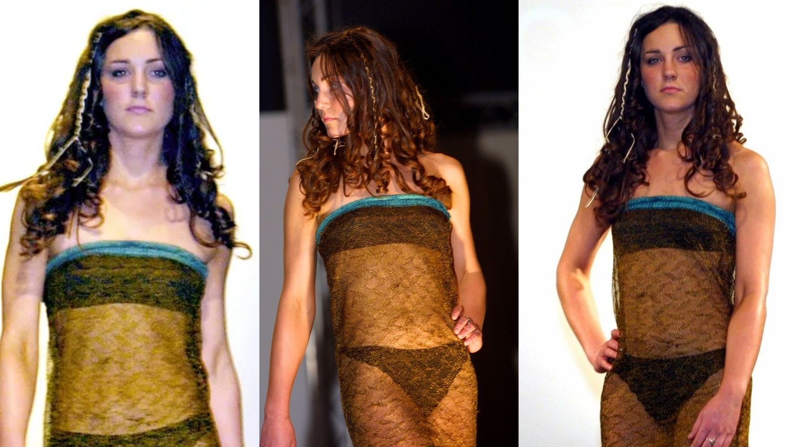 2002 yılında, Kate ve William’ın bir dönemler öğrencisi olduğu St.Andrews Üniversitesi’nde düzenlenen yardım defilesi, yalnızca Kate’in stil yolculuğundan unutulmaz bir anı değildi. Aynı zamanda, kraliyete yakın kaynakların sıkça ifade ettiği üzerine, Prens William’ın ona karşı hislerinin derinleştiği andı. Charlotte Todd tarafından bir etek olarak tasarlanan fakat Kate’in önerisiyle elbiseye dönüştürülen transparan tül parça, oldukça cesur ve yaratıcı bir seçimdi. Zümrüt yeşili ince şeritlerle çevrili vücudu saran file dokulu kumaş, altına giyilen siyah straplez üst ve mini şort ile elbiseyi fazlasıyla cesur kılıyordu.