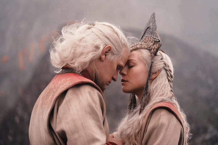 House of the Dragon‘ın ilk sezonunun sonuna yaklaşırken iç savaş katlanarak artıyor. Geçen bölümün sonunda, ejderhası Vhagar‘a baskı yaparak kendisini öldürten Laena Velaryon’un cenazesinde tüm Targaryen ahalisini bir arada görüyoruz. Dizinin başından beri Velaryonlar denizi, Targaryenler ateşi benimsemiş birer aile olarak karşımıza çıkıyorlar. Ortak Valyria kanına sahip olmalarına rağmen biri ateş diğeri suyu temsil ediyor.