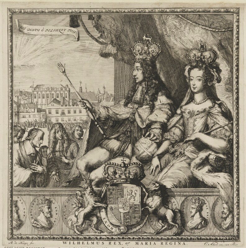Mary, kendisi ile William’ın ülkeyi ortak hükümdarlar olarak yönetmesi konusunda ısrarcı oldu; aksi takdirde tahtın kabul edilmeyeceğini söylüyordu. O sırada II. James İrlanda sürgünündeydi, tahta yeniden geçmek adına adımda bulundu ama William’a bağlı güçler tarafından Boyne Muharebesi’nde yenildi ve Fransa’ya gitmek zorunda kaldı. Mary ve William 1689 yılının nisan ayında, Westminster Abbey’de yapılan taç giyme töreninde II. Mary ve III. William olarak İngiltere’nin yeni hükümdarları olarak ilan edildiler. Yeni kral ve kraliçe, böyle bir sorunun tekrarlanmaması adına parlamentonun öne sürdüğü yasayı sunulan şartlar beraberinde kabul etti: İnsan Hakları Bildirgesi (Bill Of Rights). Bu bildirgeye göre egemenlik parlamentoya geçti ve taht Katolikliğin getirdiği baskıdan kurtarıldı.