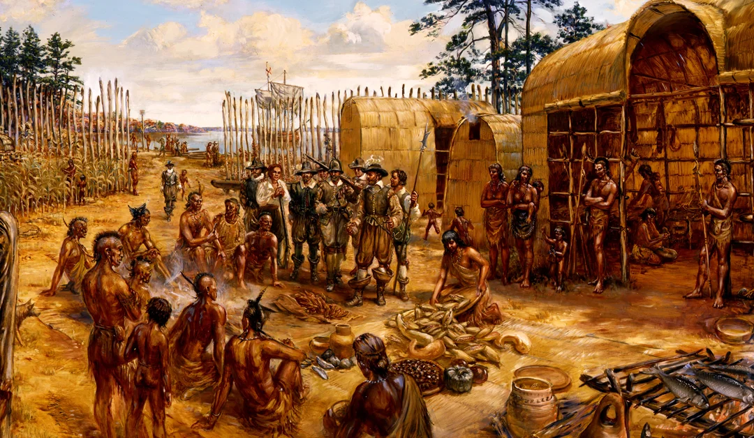 John Smith, Jamestown bölgesinde hakim olan Powhatan lideri ile bir anlaşma yaptı ve bu anlaşma sayesinde çıkarlar tatmin edildi. İngilizler yerlilerden yiyecek alırken yerliler onlardan bazı silahlar dahil olmak üzere metal malzemeler aldı. Fakat bu iki ırk arasında yaşanan çatışmalardan kaçınmak neredeyse imkansızdı. Bir süre sonra, yapılan anlaşma Powhatan lideri tarafından yıkıldı. Bir yandan devam eden insan akını, yerlileri rahatsız etmiş olacak ki onların bölgeye girişini engelleyecek şekilde ayarlamalar yaptılar.