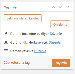 Yazı alanına girip tüm ayarları düzenledikten sonra alttaki kısımdan yazıyı yayına alabilirsiniz.