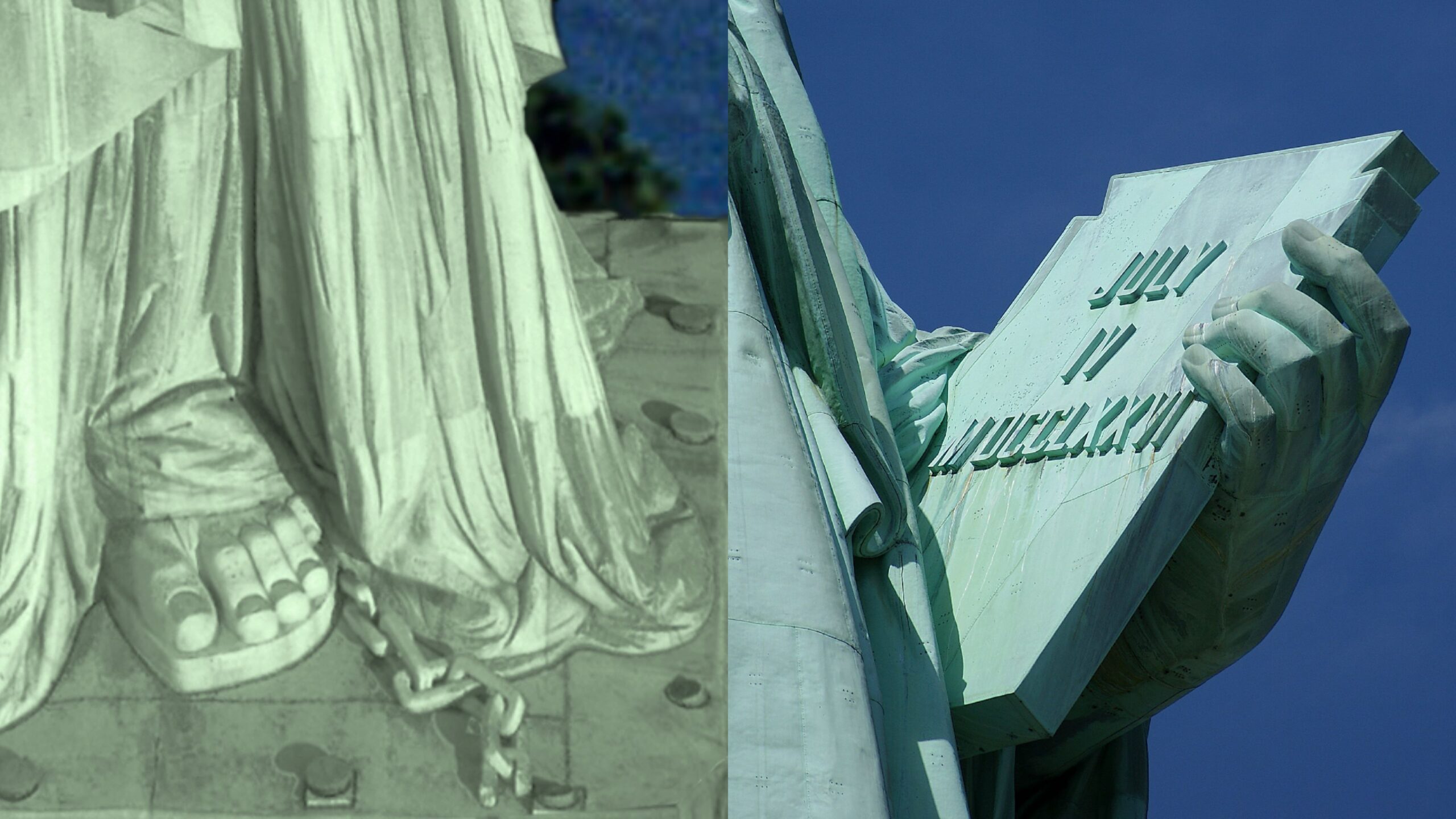 Kırılan zincir, mücadele ile elde edilen özgürlüğü ve tutsaklıktan kurtulmuş hür bir insanı simgeler. 6 Aralık 1865’te Amerika’da 13. Anayasa Değişikliği kabul edildi ve kölelik yasaklandı. Laboulaye’nin heykel fikrini ortaya atmasının temel nedenlerinden biri de budur. Kölelik karşıtı bir düşünür olan Laboulaye, bu gelişmeyle Amerikan demokrasisinin gerçek anlamda tamamlandığını düşündü ve bunu Fransa demokrasisi ile ortak bir sembol haline getirmek istedi.