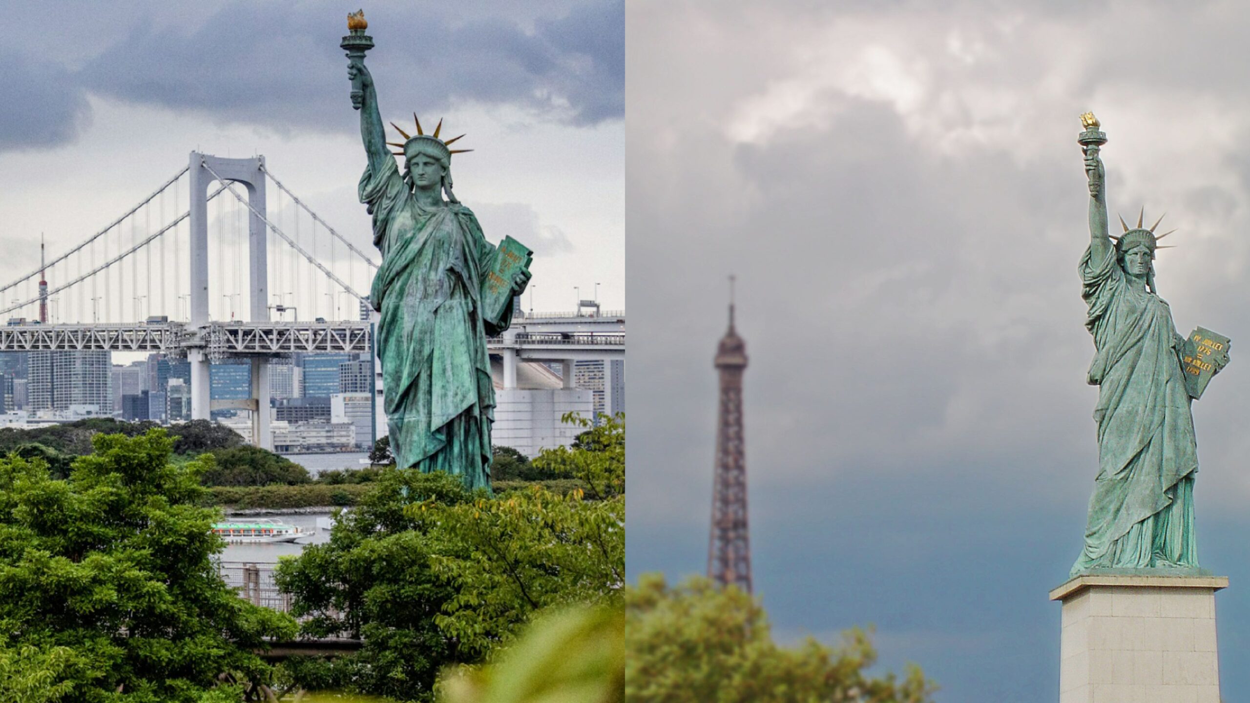 Dünyada büyük ses uyandırmış sanat eserlerinin benzerleri veya replikaları olmaması imkansızdır. Bu durum Özgürlük Heykeli için de geçerlidir. Heykelin replikaları Japonya ve Fransa’da bulunmaktadır. 1988 yılında, Japonya ve Fransa arasındaki güçlü bağlar ve ilişkiler nedeniyle Fransa tarafından heykelin bir replikası hediye edildi. Heykel, Tokyo Körfezi’nin Odaiba bölgesinde yer alır. Geçici olarak dikilen heykel, ülke çapında büyük ilgi gördü ve kalıcı hâle geldi. Fransa’da bulunan heykel ise asıl heykelin dörtte biri büyüklüğündedir. Tabletinde, Bağımsızlık Bildirgesi’nin yanında 14 Temmuz 1789 tarihli Fransız İhtilali de yazılıdır. Bu, bir araya gelmiş iki ulusun iki önemli tarihini belirtir ve ortaklığı simgeler.
