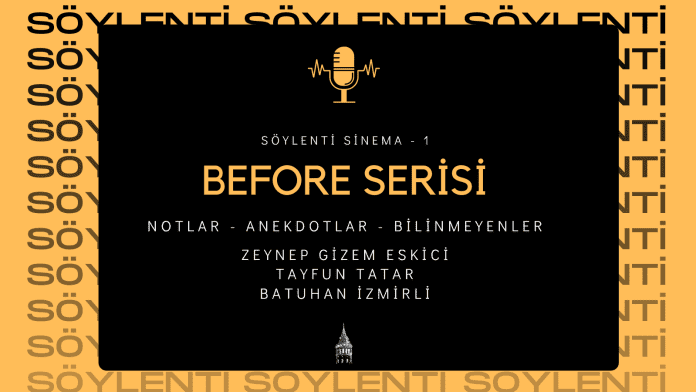 Söylenti Sinema Podcast serisinin birincisinde Zeynep Gizem, Tayfun ve Batuhan Before Sunrise, Before Sunset ve Before Midnight trilojisi üzerine sohbet ettiler. Seri hakkında bilinmeyenler hakkında konuşup ankekdotları paylaştılar.
