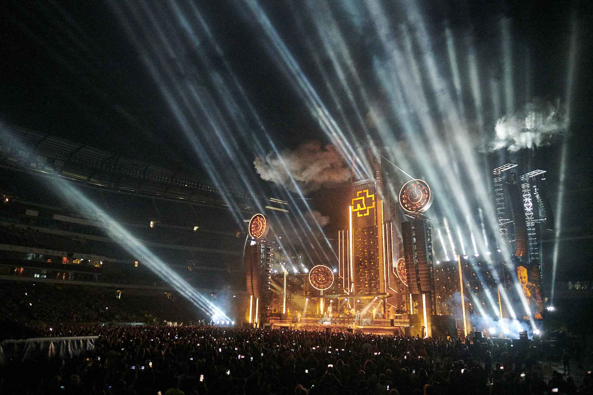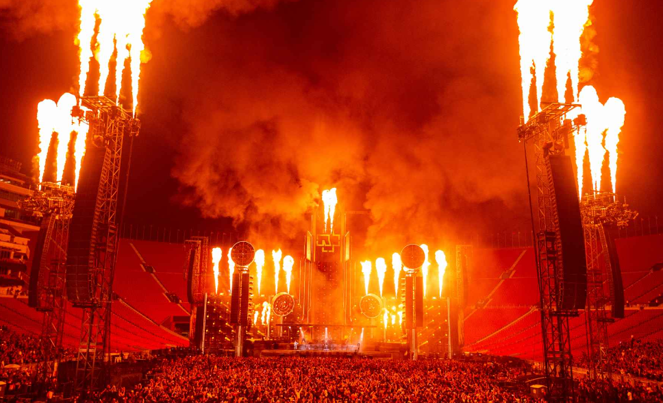 Sahne önü bilet alanların, ateşten ve sıçrayabilecek diğer ürünlerin gelme riskini bildiğine ve kabul ettiğine dair beyanname imzamaları boşuna değildir. Konserleri sadece işitsel değil görsel olarak da şova dönüştürmeyi bu şekilde başarabilmiştir Rammstein grubu.