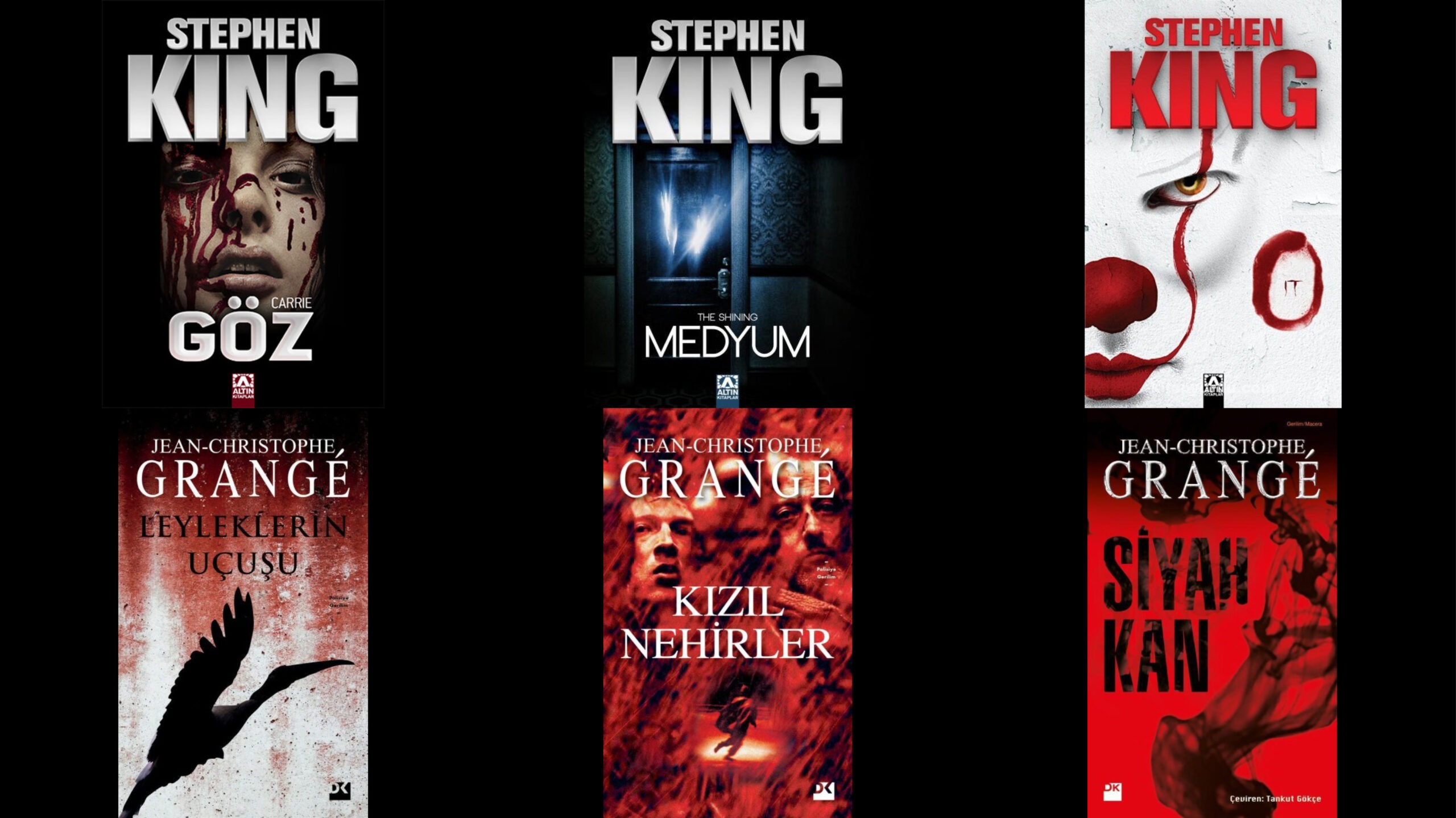 Jean-Christophe Grangé’ın ilk romanı olan Le Vol des Cigognes (Leyleklerin Uçuşu, 1994), göçmen kuşları izlerken küresel bir organ kaçakçılığı ağını keşfeden bir araştırmacının hikâyesini anlatır. Grangé’a uluslararası başarı getiren Les Rivières Pourpres (Kızıl Nehirler, 1998), karanlık bir okulda işlenen ritüel cinayetlerin ardındaki korkutucu gerçeğin ortaya çıkışıyla gerilimi yüksek ve zekice örülmüş bir polisiye sunar. La Ligne Noire (Siyah Kan, 2004) ise, seri katillerin peşine düşen bir gazetecinin, kendi karanlığıyla yüzleştiği ölümcül takibini konu eder.