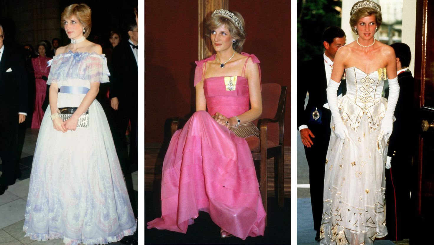 Diana’nın kırmızı halıda ve özel davetlerde giydiği elbiseler, moda tarihine damgasını vurdu. Tasarımcı tercihlerinde zengin ve seçkin bir yelpazeye sahip olan Diana, bedenini ve karakterini mükemmel bir şekilde vurgulayan elbiselerini stilinin bir imzası şeklinde nitelendirdiği için stilistlerinden özel dikim tasarımlara öncelik vermelerini istedi. Her elbise, Diana’nın zarafetini ve zevkini yansıtan birer sanat eseri gibiydi.