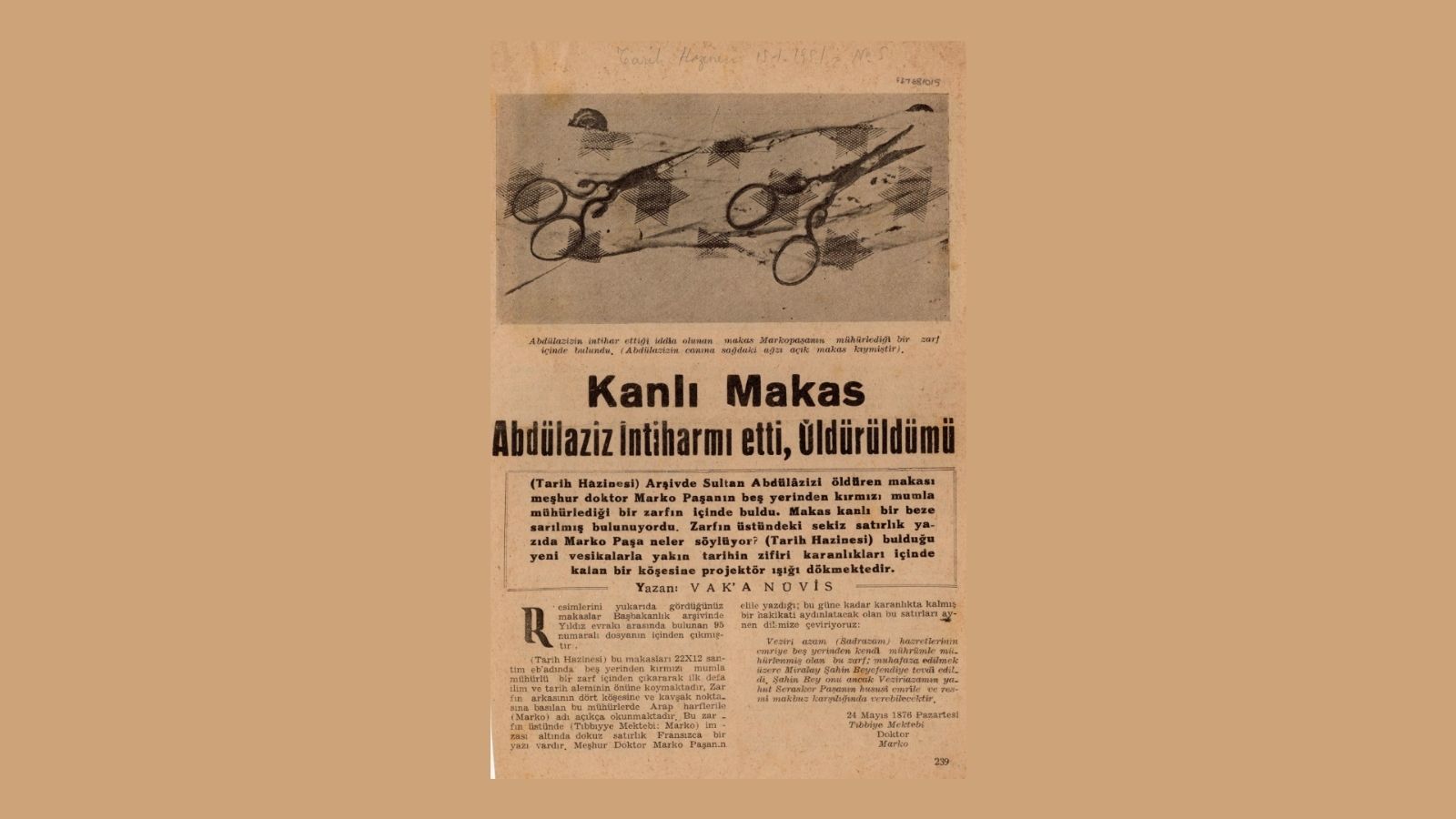 Halkın dilinde dolanan mısralar Sultan Abdulaziz’in intiharına inanılmadığının, ölümünün cinayet olduğunun bir göstergesidir.